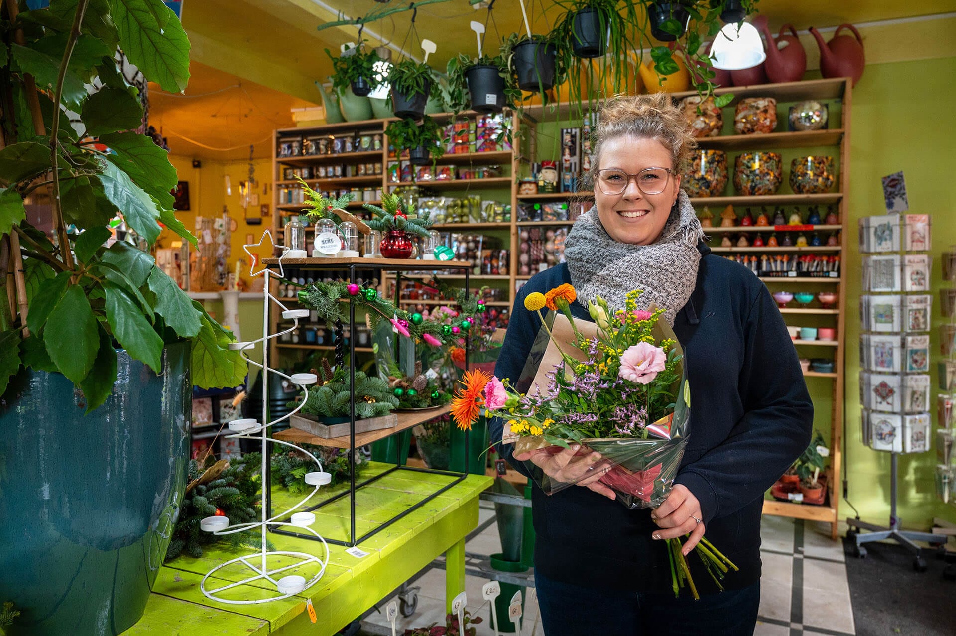 Het meest bijzondere aan mijn werk vind ik het maken van rouwwerk. Om iets voor iemand te kunnen doen voor de allerlaatste keer. Een laatste groet en een troost voor de naasten. Één keer heb ik zelfs met tranen in mijn ogen gestaan toen de naasten het rouwstuk kwamen halen. Gelukkig is er in de winkelruimte voor alle emoties. Met collega’s kan ik goed praten en vooral héél goed lachen. We hebben onderling veel lol en het gebeurt zelden dat ik geen zin heb om naar werk te gaan. Hier voelt het vertrouwd en krijg ik alle vertrouwen zo doe ik sinds 2022 ook de social media kanalen voor beide winkels. Zo ben ik tegenwoordig niet alleen bezig met bloemen en planten maar ook met fotografie, teksten schrijven en ideeën bedenken voor nieuwe content en acties. Dit maakt mijn werk afwisselend, uitdagend en leuk!